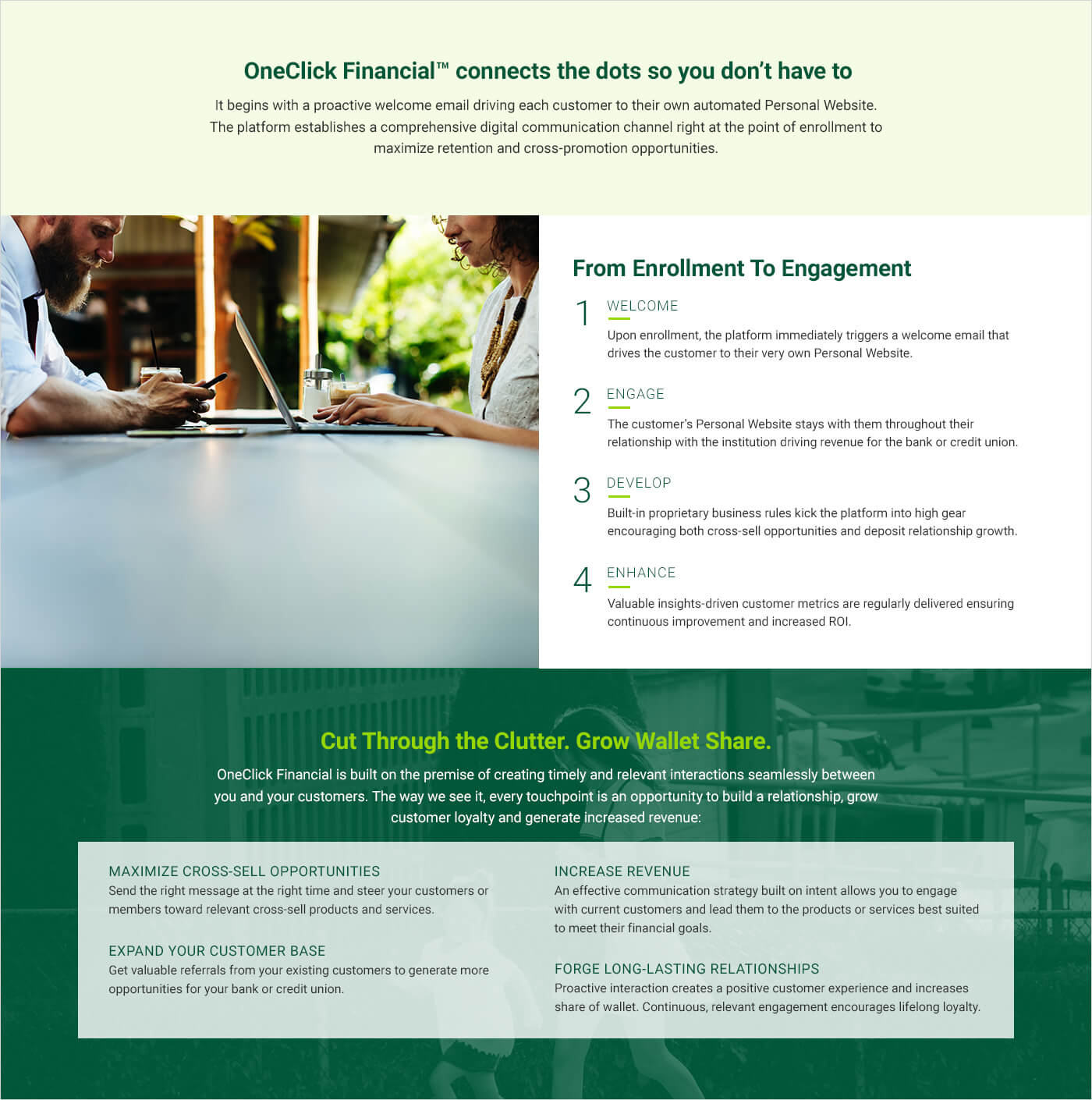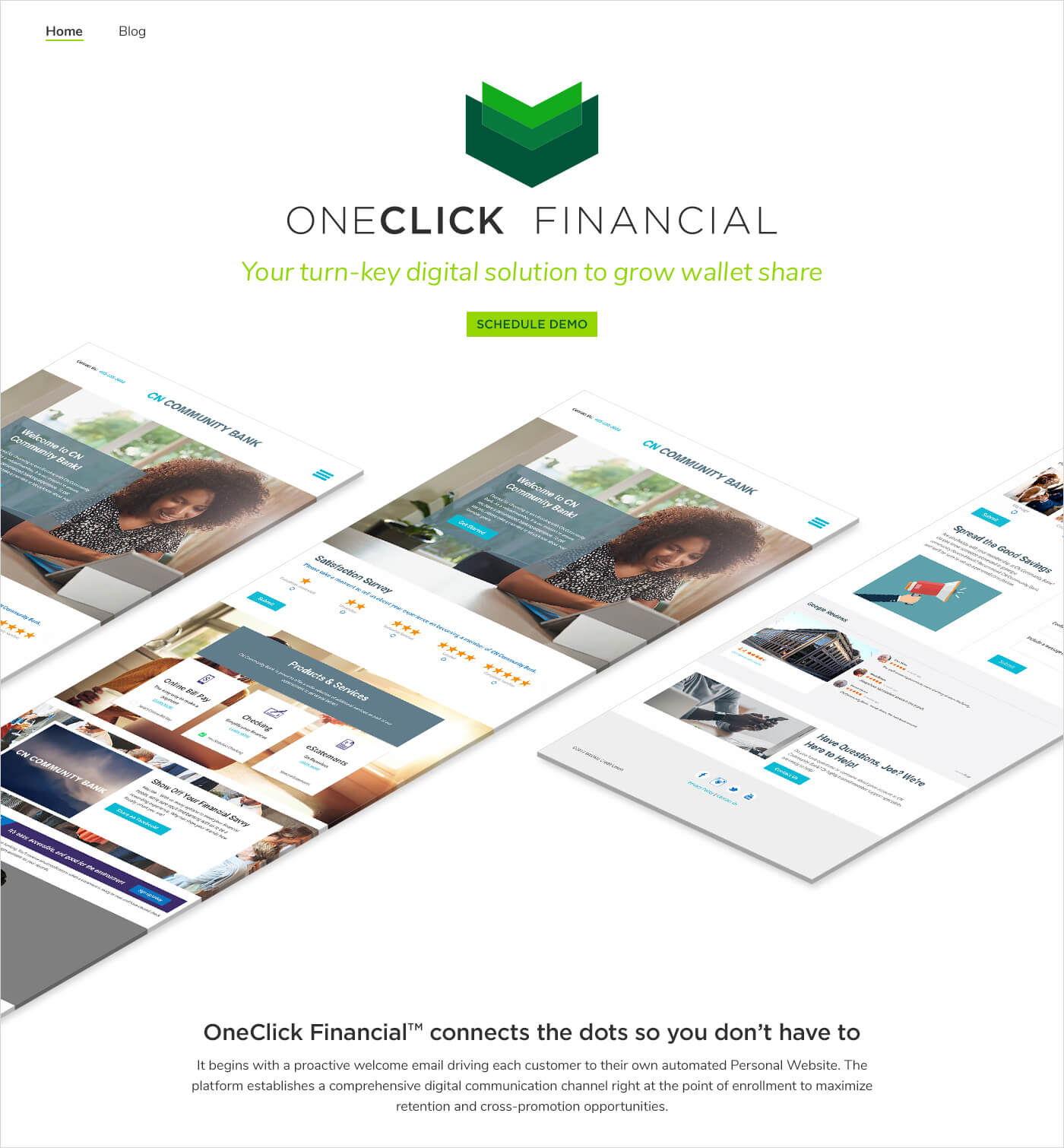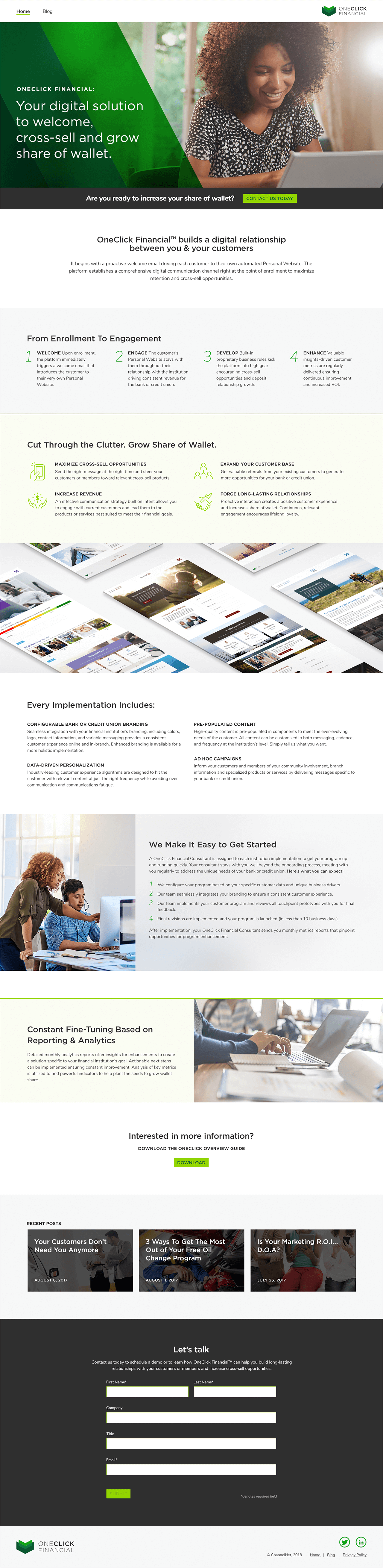 My company ChannelNet launched a new product, OneClick Financial. I was tasked with designing a marketing website to act as a landing page for potential new clients.